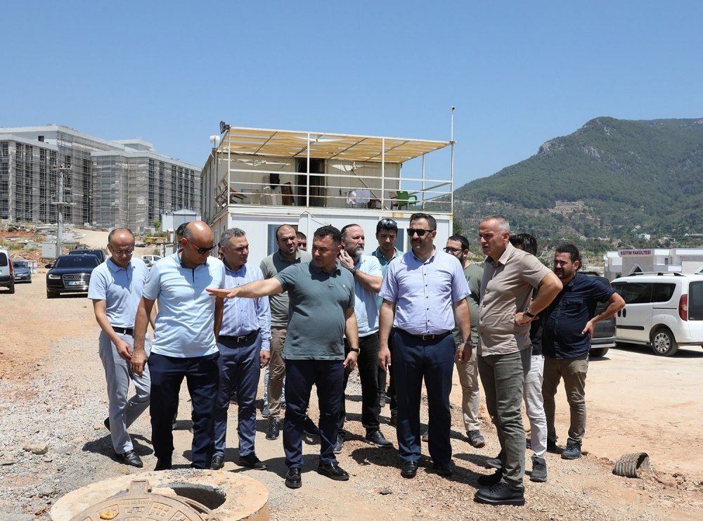 Alanya Alaaddin Keykubat Üniversitesi (ALKU) Rektörü Prof. Dr. Ekrem Kalan, Alanya Belediye Başkanı Adem Murat Yücel, Antalya Gençlik ve Spor İl Müdürü Yavuz Gürhan ve beraberindeki heyet ALKÜ Kestel Yerleşkesinde çevre ve altyapı düzenlemeleri ile son aşamaya gelen ve 2022-2023 öğretim yılında hizmete girecek olan 2000 kişilik Kredi Yurtlar Kurumuna (KYK) ait yurt inşaatında incelemelerde bulundu. 2022-2023 Öğretim Yılında hizmete girmesiyle ALKÜ'lü öğrencilerin konaklama sorununu en aza indirilmesi için büyük bir özveriyle çalıştıklarını ifade eden ALKÜ Rektörü Prof. Dr. Ekrem Kalan, "Alanya Belediye Başkanımız Adem Murat Yücel, Antalya Gençlik ve Spor İl Müdürümüz Yavuz Gürhan ve kurum müdürlerimizle KYK yurdunda inceleme yapmak için bir araya geldik. KYK yurdu hizmete girmek için gün sayıyor. Şu an da çevre ve altyapı çalışmaları devam ediyor. 2000 kişilik bu yurt hizmete girmesiyle Alanya'daki yurt kapasitesi yüzde yüz artmış olacak. Yaklaşık 4000 öğrencinin faydalanacağı KYK yurtlarının yanı sıra apart otelleri de devreye alarak, öğrencilerimizin konforlu ve huzurlu bir şekilde eğitim hayatlarını sürdürmeleri için "Akademik Yıl" başlamadan son hazırlıklarımızı ivedi olarak yapıyoruz. Şunu da belirtmek isterim ki, yine Kestel Yerleşkemiz içerisine gelecek yıl yapılacak yurt binası için 15 dönüm yer tahsisi yapıldı. Burada yapılacak yurt binasıyla birlikte öğrencilerimiz daha da rahat edecek. Öte yandan ALKÜ yönetimi olarak KYK Genel Müdürlüğü ile de görüşmelerimiz kapsamında Cikcilli Yerleşkesinde de 2000 kişilik yurt için mutabakata vardık. Üniversite olarak öğrencilerimizin konaklama ihtiyacı için elimizden gelen gayreti gösteriyoruz." şeklinde konuştu.
