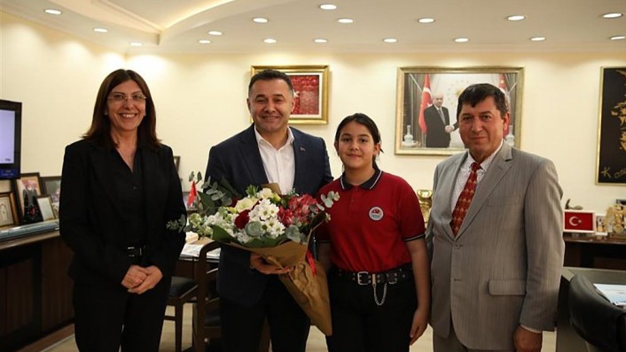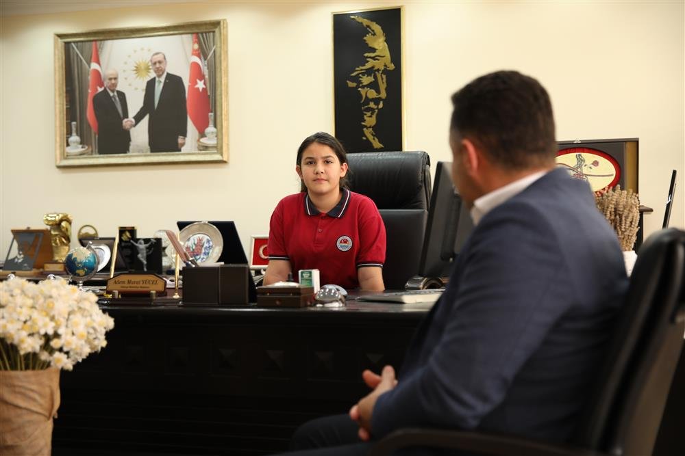 Alanya Belediye Başkanı Adem Murat Yücel 23 Nisan Ulusal Egemenlik ve Çocuk Bayramı nedeniyle minik ziyaretçisi Buğlem’i ağırladı. Alanya Julide Akça İlköğretim Okulu öğrencisi Buğlem, öğretmenleri ile Başkan Yücel’i ziyaret etti ve makam koltuğunu devraldı. Artık geleneksel hale gelen koltuk devir teslimi neşeli anlara sahne oldu.