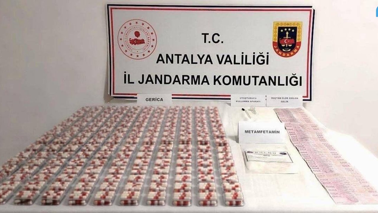 Antalya İl Jandarma Komutanlığı ekipleri, Antalya Cumhuriyet Başsavcılığı koordinesinde uyuşturucuyla mücadele kapsamında çalışma başlattı. Çalışmalar kapsamında şüpheli bir araç durdurularak arama yapıldı. Araçta yapılan aramada 1.770 adet sentetik hap, 5 gram metamfetamin ile suçtan elde edildiği değerlendirilen 11 bin 750 TL ele geçirildi.