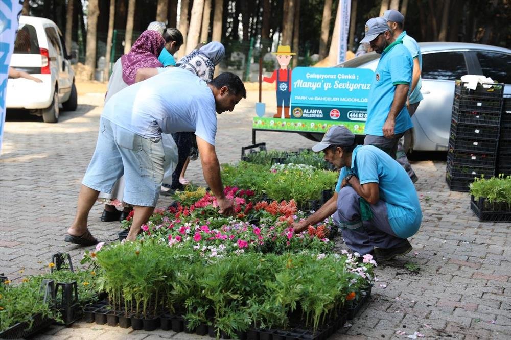 Alanya Belediyesi’nin geleneksel hale getirdiği çiçek dağıtımı bu yıl da gerçekleştirildi. 31 mezarlıkta 60 bin çiçek ücretsiz olarak vatandaşlara dağıtıldı. Alanya Belediye Mezarlığı’nda çiçek dağıtımına katılan Başkan Yücel, vatandaşlara çiçek dağıttı. 22 türde farklı çiçeklere vatandaşlar yoğun ilgi gösterirken Başkan Yücel’e teşekkürlerini sundular.