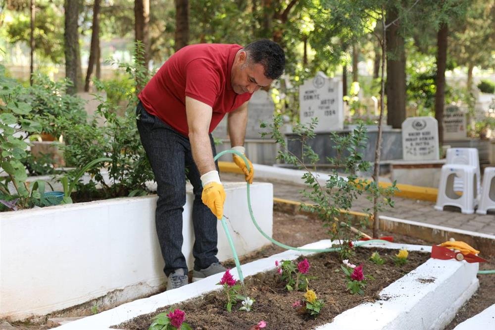 Başkan Yücel, Kurban Bayramı öncesi kimsesizleri de unutmadı. Müftü Vekili Arslan ve Alanya Belediyesi Park Bahçeler Müdürü Nazmi Uyar’la birlikte kimsesiz mezarlara çiçek eken ve su veren Başkan Yücel, dualarla kimsesiz vatandaşlara rahmet diledi.